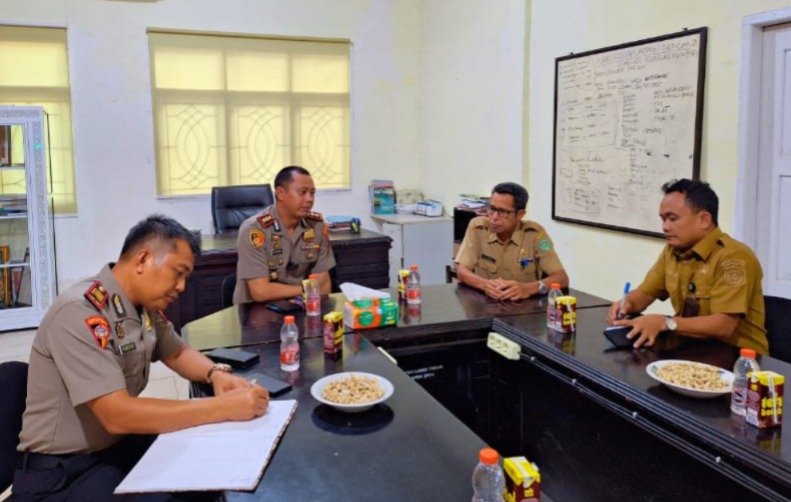 Kepala Pelaksana BPBD Lutim, dr. April, didampingi sekretarisnya, menerima langsung kehadiran Kapolres bersama Kabag Ops Polres Lutim.