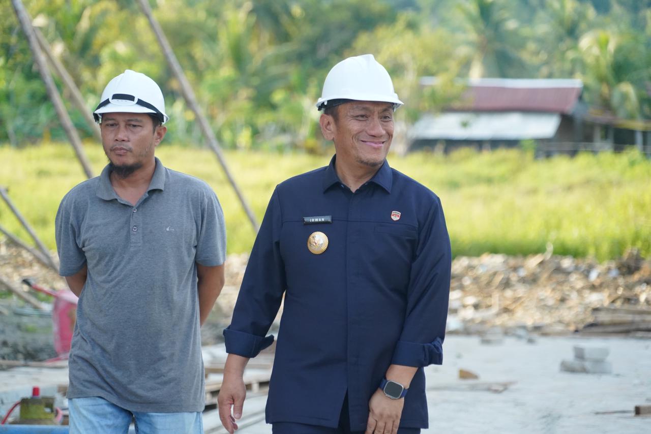 Bupati Irwan meninjau sejauh mana proses dari pembangunan Rumah Sakit ini dengan melihat dan bercengkrama langsung dengan pelaksana proyek.