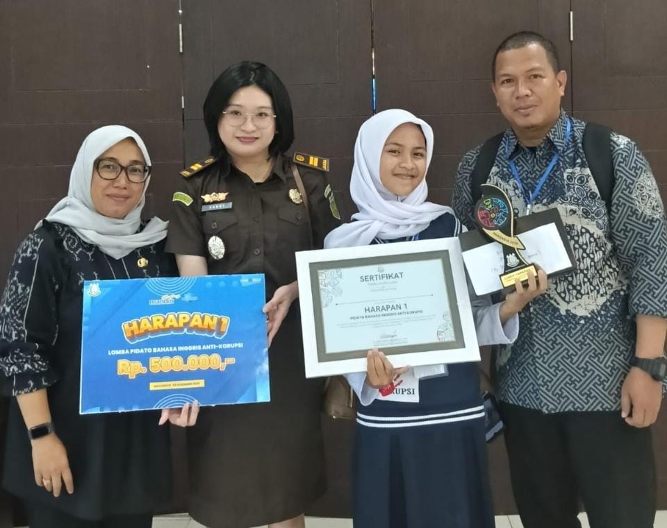 Ia adalah Dwi Maulani, siswi yang penuh semangat, berhasil meraih Juara Harapan I dalam Lomba Pidato Bahasa Inggris dengan tema Anti Korupsi.