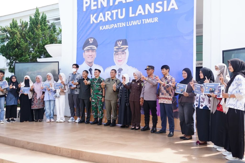 NasionalismeNews.Com.Luwu Timur_Malili-Bupati Luwu Timur, Irwan Bachri Syam bersama Wakil Bupati Luwu Timur, Puspawati Husler menyalurkan Kartu Lutim Pintar secara simbolis di Halaman Kantor Bupati, Kamis (30/10/2025).